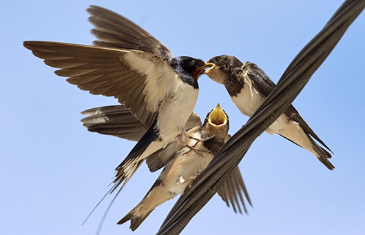 Voaram sobre mim e percebo que são três andorinhas. Não, eram 5!